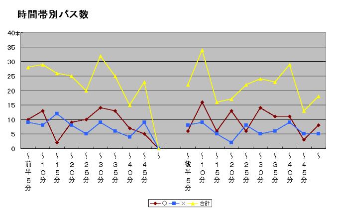 | 〜後半5分 | 0 | 4 | 3 | 4 | 3 | 0 |